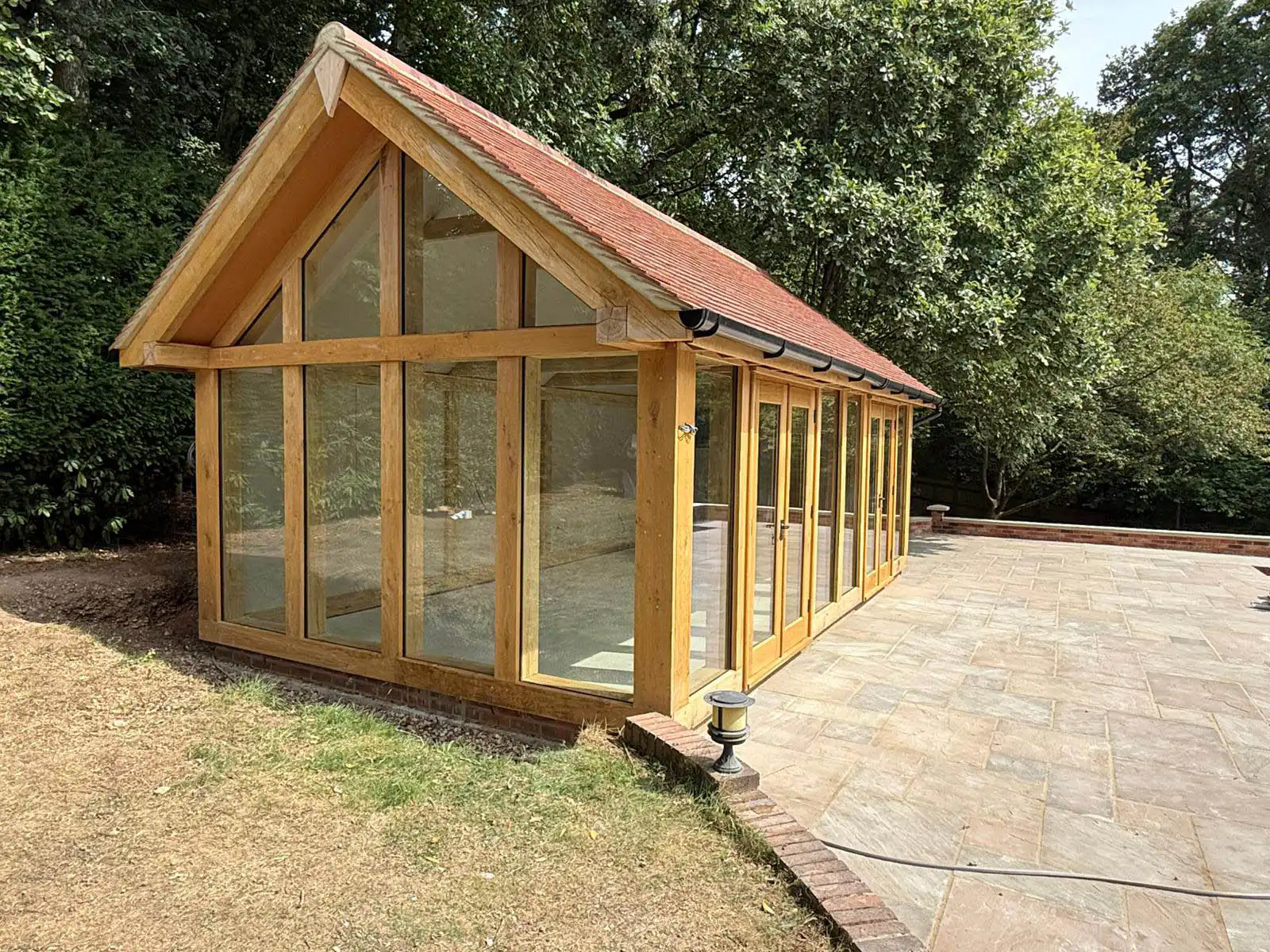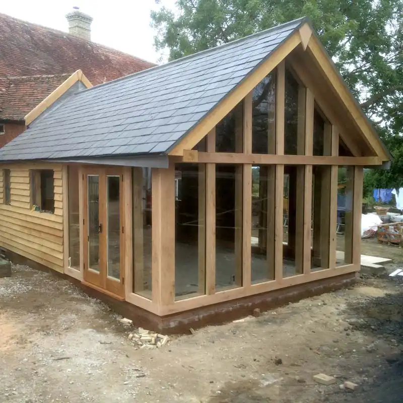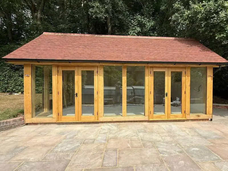 An Oak Garden Room or Sunroom is an oak framed building with up to 3 glass-panelled sides and finished with a fully insulated, tiled roof. This provides our customers with a bright wide-open space which is usable all year round irrespective of the weather.