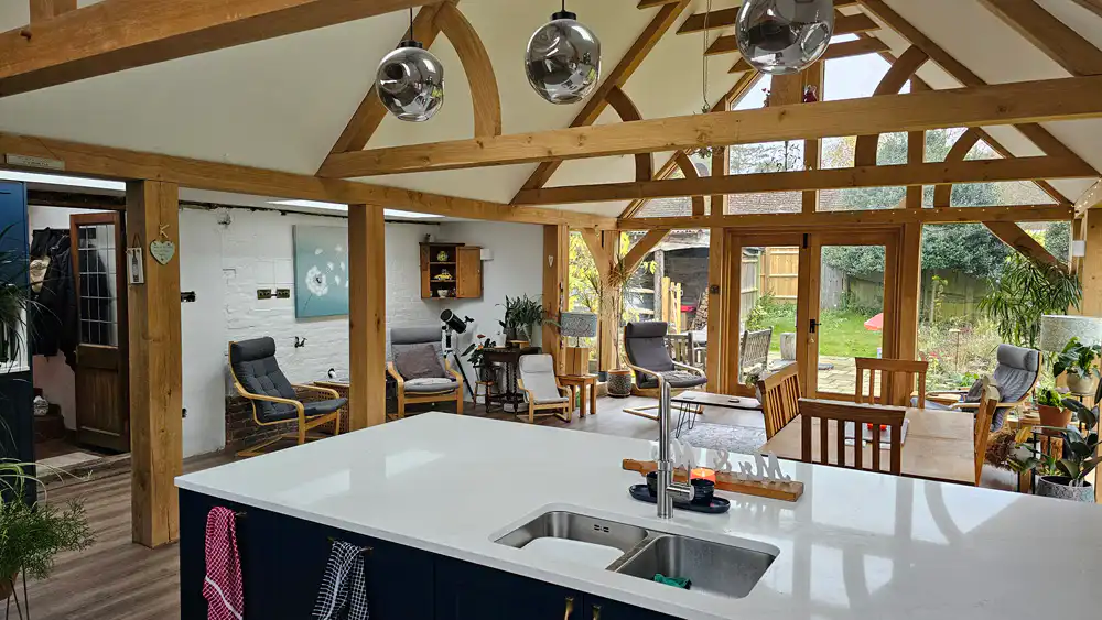 Each Oak Framed Extension is created entirely to your requirements. The first step is to book your no obligation site survey. The visit involves discussions on how the client lives, what they want out of the intended new space, how much light they want to come in and how they want to integrate the new space with the garden.