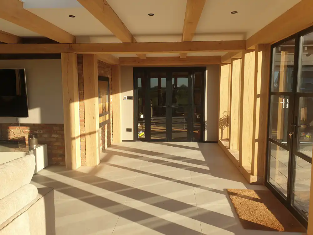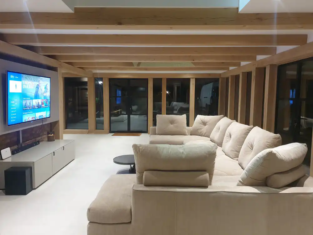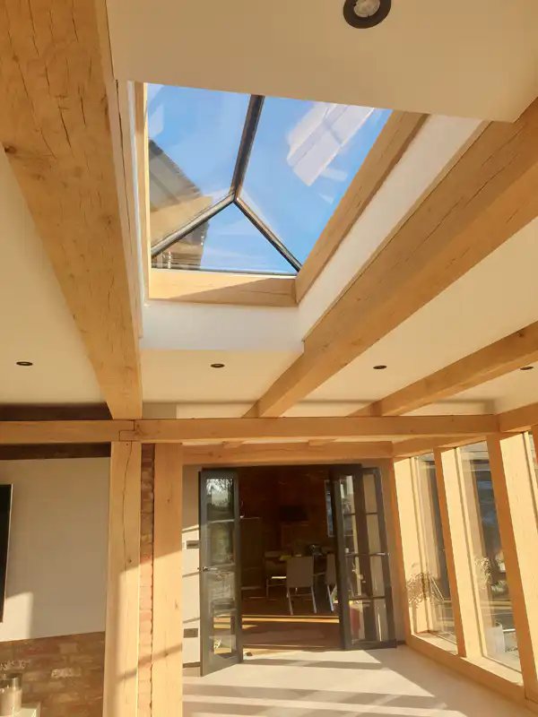 The whole building is exactly as we envisioned; Jim’s attention to detail throughout the initial meetings and during the build process ensured the finished Orangery accurately portrayed the building in our mind’s eye. We particularly like the exposed Oak beams and direct glazing; the building is a well-cut, modern-looking design.
